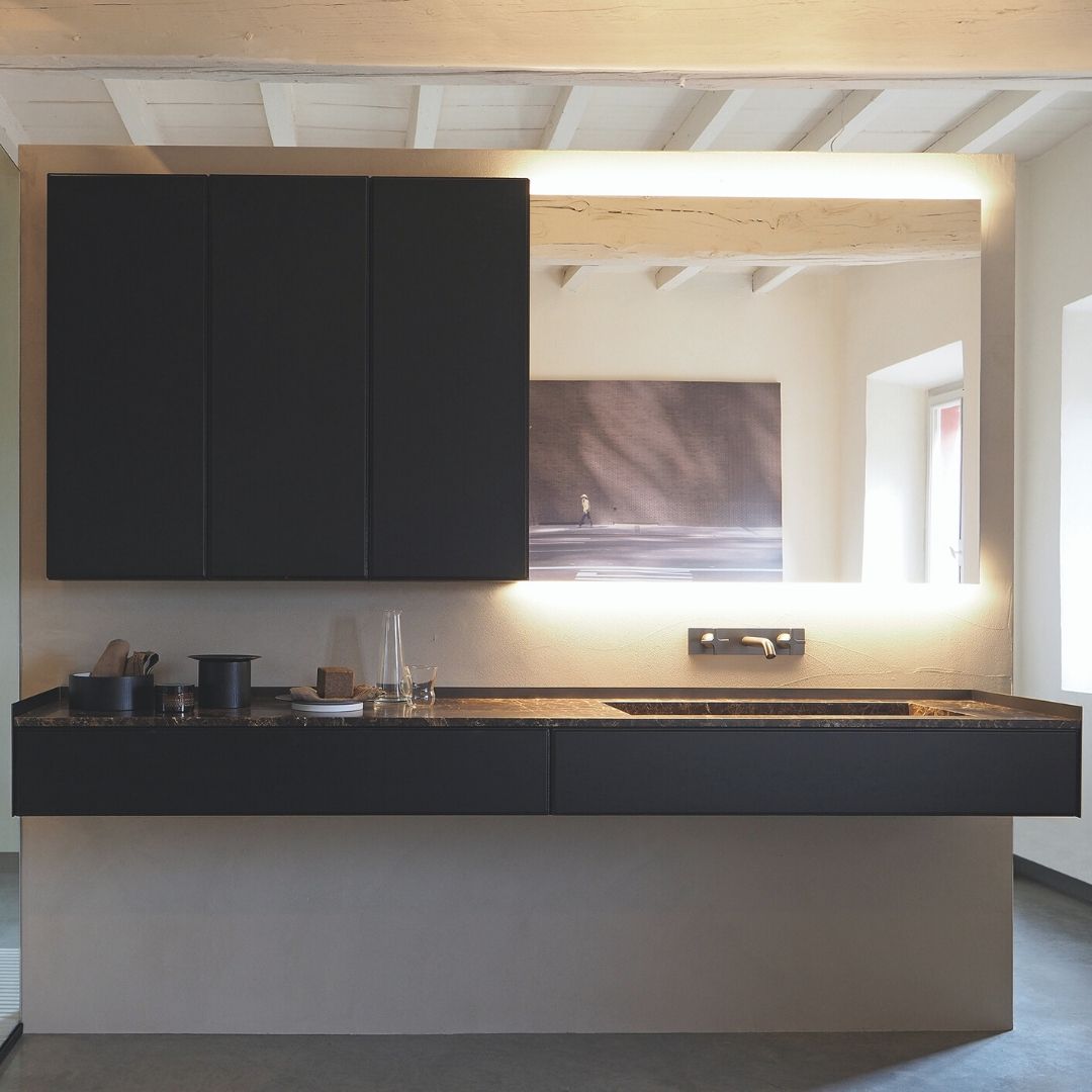 Se compone de encimera+ lavabo. Diseñada por StudioMK27, Marcio Kogan y Mariana Ruzante, se distingue tanto por su refinamiento como por la calidad de sus detalles, características que marcan todos los proyectos de este estudio de arquitectura brasileño.