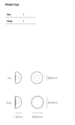Modelo 14s: Uso para pared y techo, vidrio sepia individual, placa de montaje de Ø55 mm.