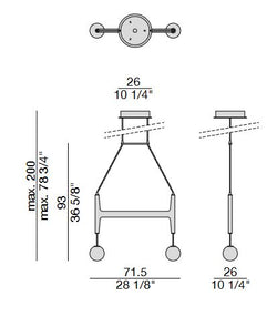 Lámpara de suspensión con estructura en nogal canaletta macizo y difusor en cristal ópalo brillo. Cables en silicona negro mate.