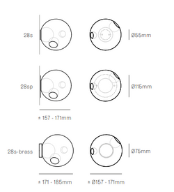 Modelo 28s: Uso pared y techo, vidrio transparente individual, placa de montaje de Ø55 mm.