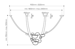 La lámpara de techo Dew Drops combina un diseño inspirado en las gotas de rocío con cristal soplado a mano y un revestimiento metálico iridiscente. Destaca por su capacidad de personalización, permitiendo ajustar detalles como el tipo de correa, el sistema de regulación de luz y los acabados de la base, creando instalaciones únicas y artísticas.
