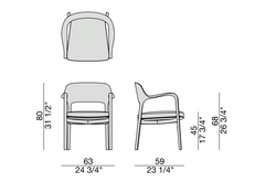 La silla Ella, diseñada por P. Jouin en 2017, combina artesanía y diseño contemporáneo. Esta silla con brazos, realizada en madera maciza, ofrece opciones de personalización en acabados y tapizados, ideal para espacios elegantes y funcionales.