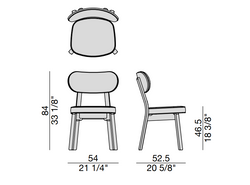 La silla de comedor Evelin, diseñada por C. Ballabio para Porada en 2020, es una pieza elegante y sofisticada, con una estructura en fresno macizo y un tapizado personalizable en una amplia variedad de telas. Su versión con brazos incorpora un detalle artesanal en cuero encerado que realza su diseño atemporal.