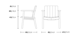 El sillón de comedor, con su asiento y respaldo de madera, combina una estética elegante con un alto nivel de confort, manteniendo una tradición clásica de diseño en muebles de exterior con estructura de madera de teca y apto para uso en exteriores es la elección perfecta para quienes buscan funcionalidad y estilo en sus áreas al aire libre.