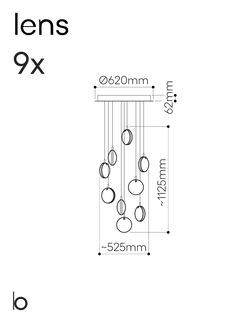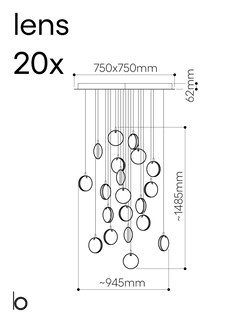 La lámpara de techo Lens Chandelier es una luminaria modular y sofisticada que permite personalizar colores, tamaños y configuraciones, adaptándose a cualquier espacio. Disponible en composiciones de 3, 6, 9, 12, 20 y 26 luminarias, combina cristal soplado artesanal y acabados elegantes para crear diseños únicos.