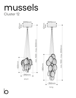 La lámpara de techo Mussels Cluster 12 Pcs es un conjunto de doce luminarias colgantes de la colección Mussels, diseñadas para crear una composición lumínica impactante y sofisticada. Fabricado con cristal soplado en diferentes acabados, este diseño combina formas orgánicas con un toque contemporáneo, ideal para ambientes modernos y elegantes.