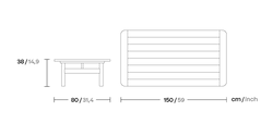 Kettal utiliza una estructura de madera maciza de teca tratada para exteriores, con la opción de elegir entre un tablero a juego en la misma madera o en mármol tratado para uso al aire libre, añadiendo un toque de luminosidad y sofisticación al entorno donde se coloque la mesa.