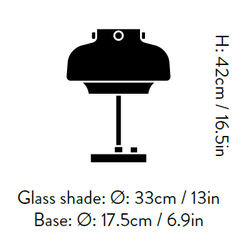 Diámetro: Pantalla de crital: Ø: 33cm / Base: Ø: 17.5cm