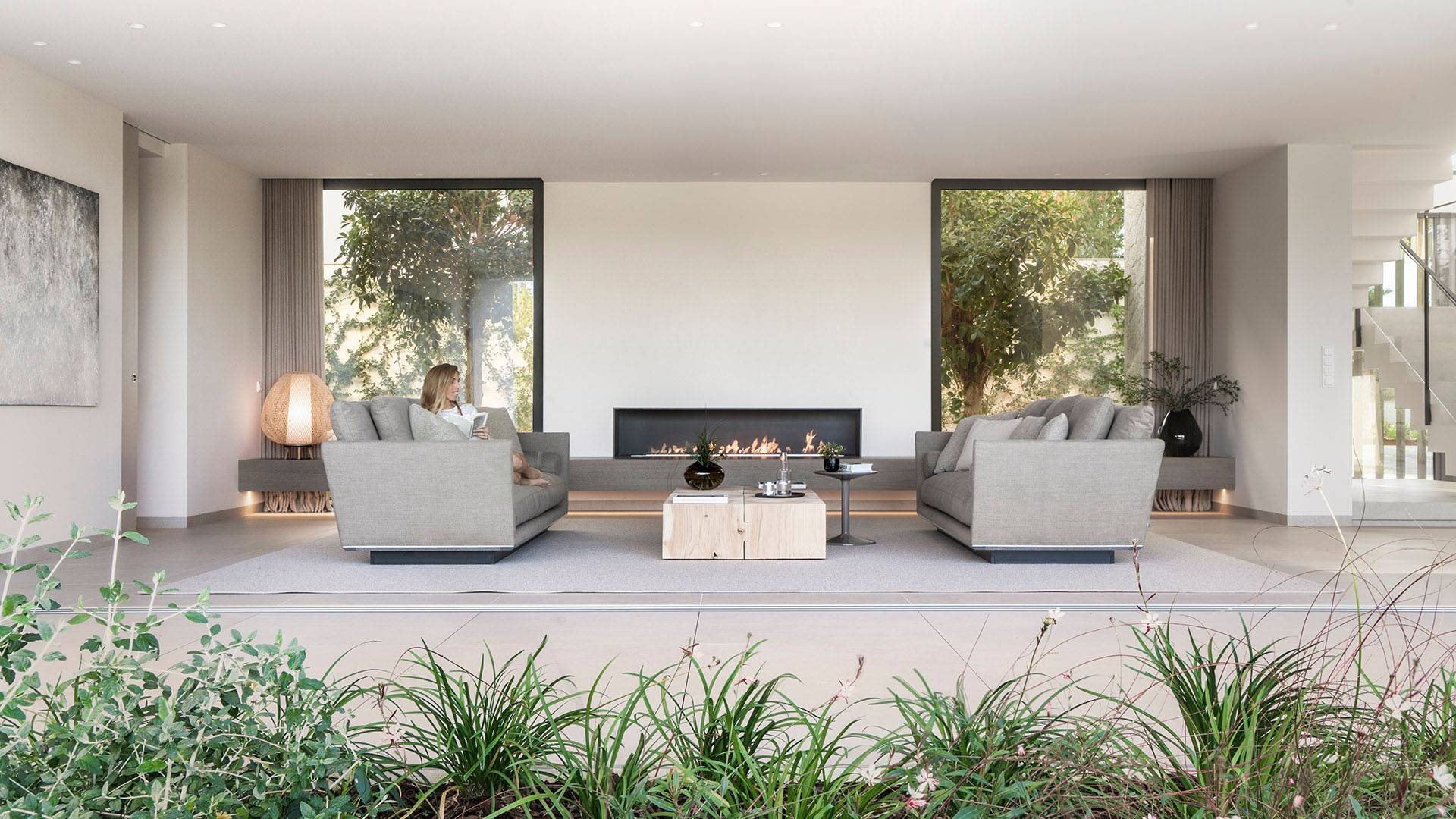 En el corazón de Bonanova, el salón se presenta como el espacio central del hogar, diseñado para promover la interacción familiar con cómodos sofás frente a la chimenea. La cocina y el comedor se fusionan de manera armoniosa, combinando lo práctico con la tranquilidad del entorno, ofreciendo un espacio ideal para reuniones y momentos compartidos.
