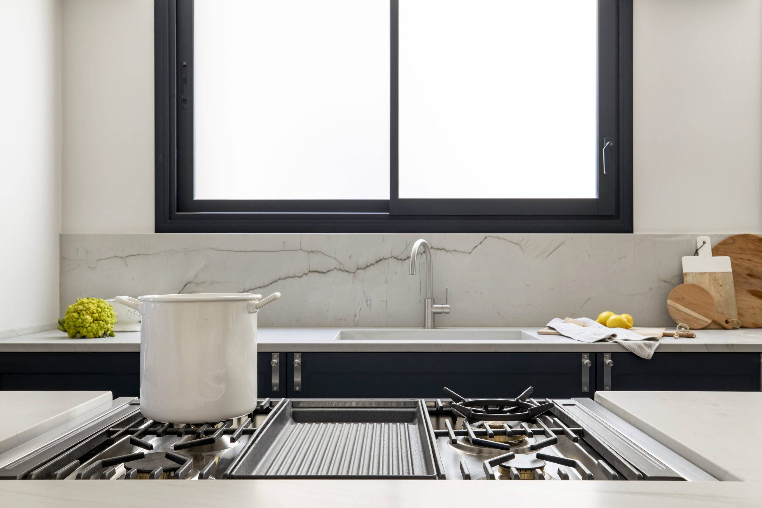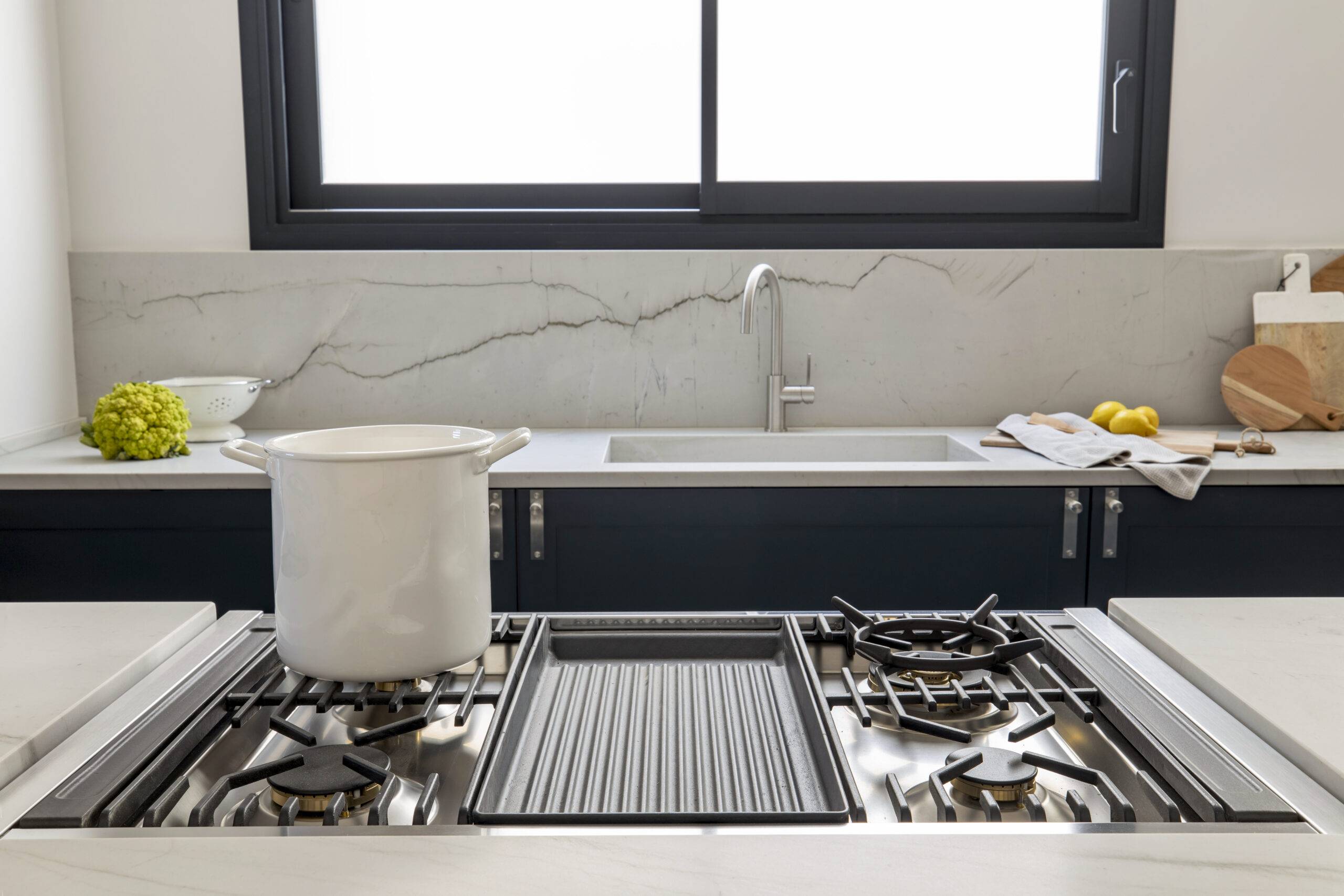 Los detalles en acero dentro del espacio son elementos distintivos que añaden un toque moderno y pulido al conjunto. Esta muestra evidencia que incluso los elementos más pequeños pueden desempeñar un papel crucial en el diseño de una cocina, reforzando la cohesión y la estética general del espacio.