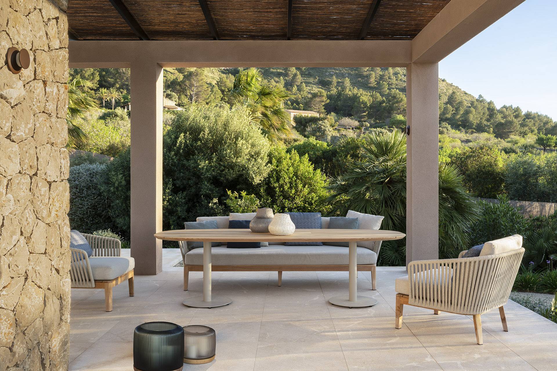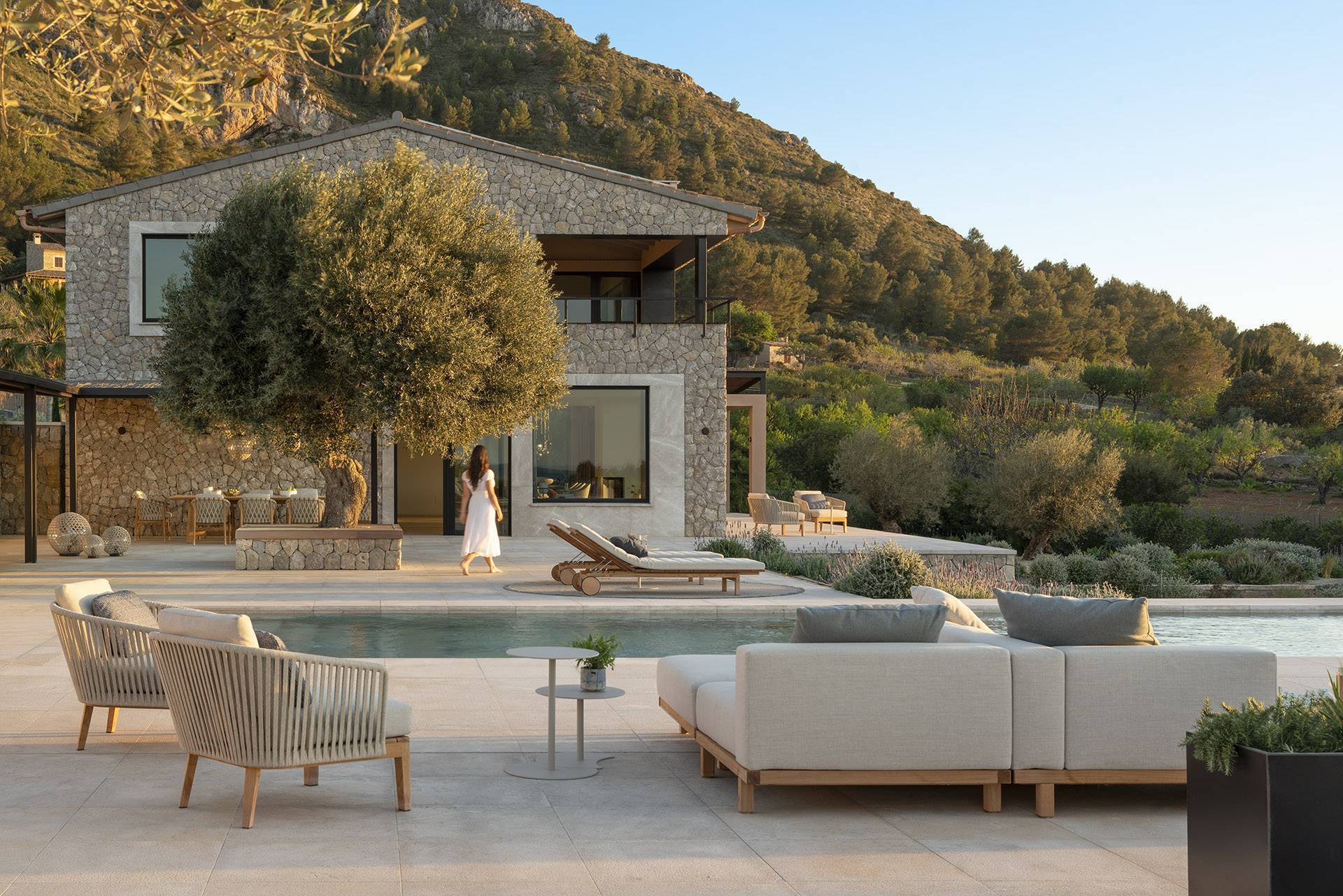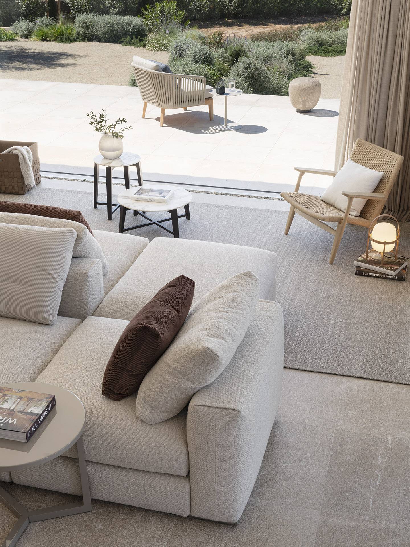 Los colores neutros del mobiliario nos permiten fusionar el interior y el exterior, siempre acompañando al paisaje sin robarle protagonismo, convirtiendo el conjunto en un lugar incomparable.