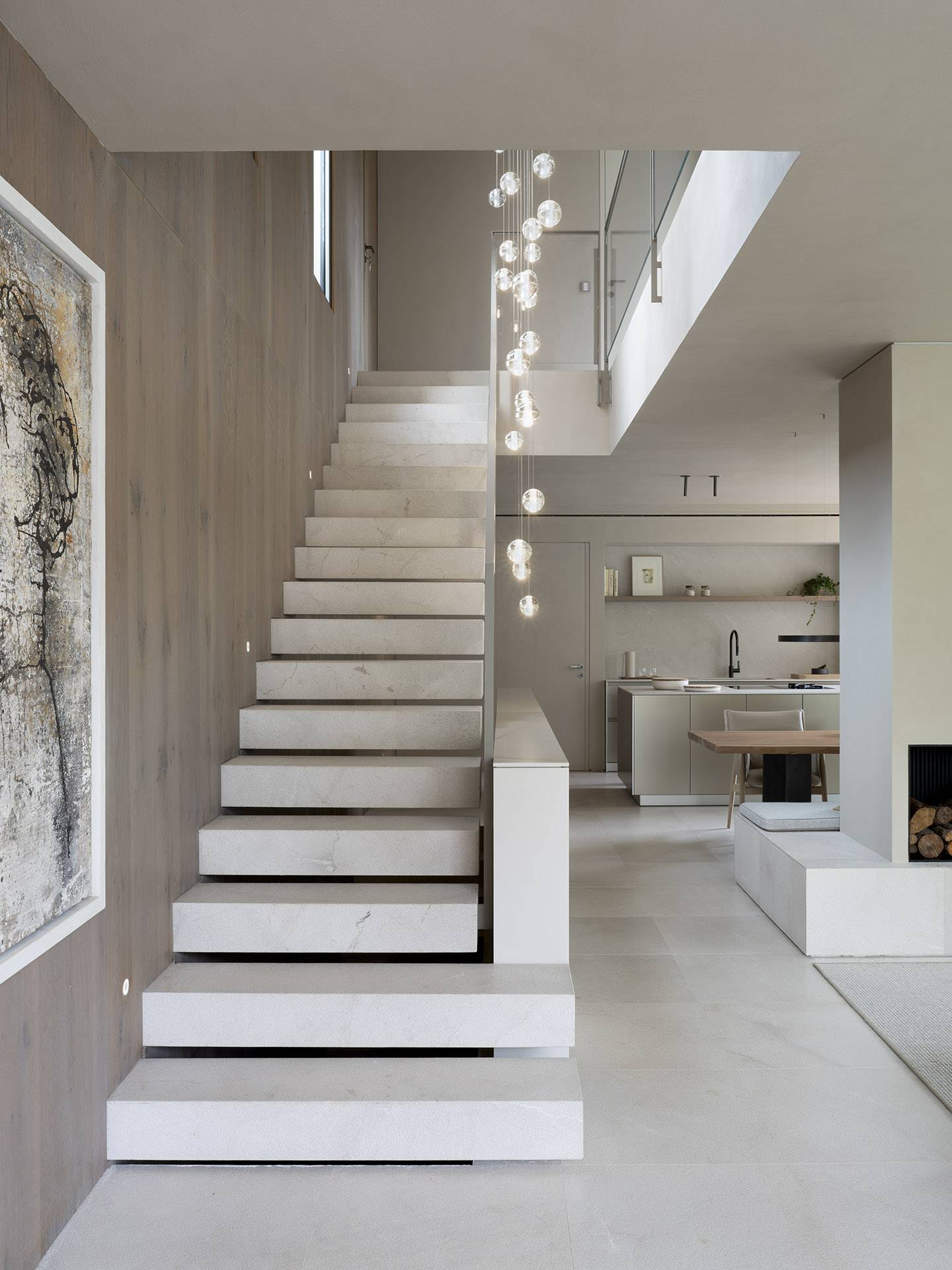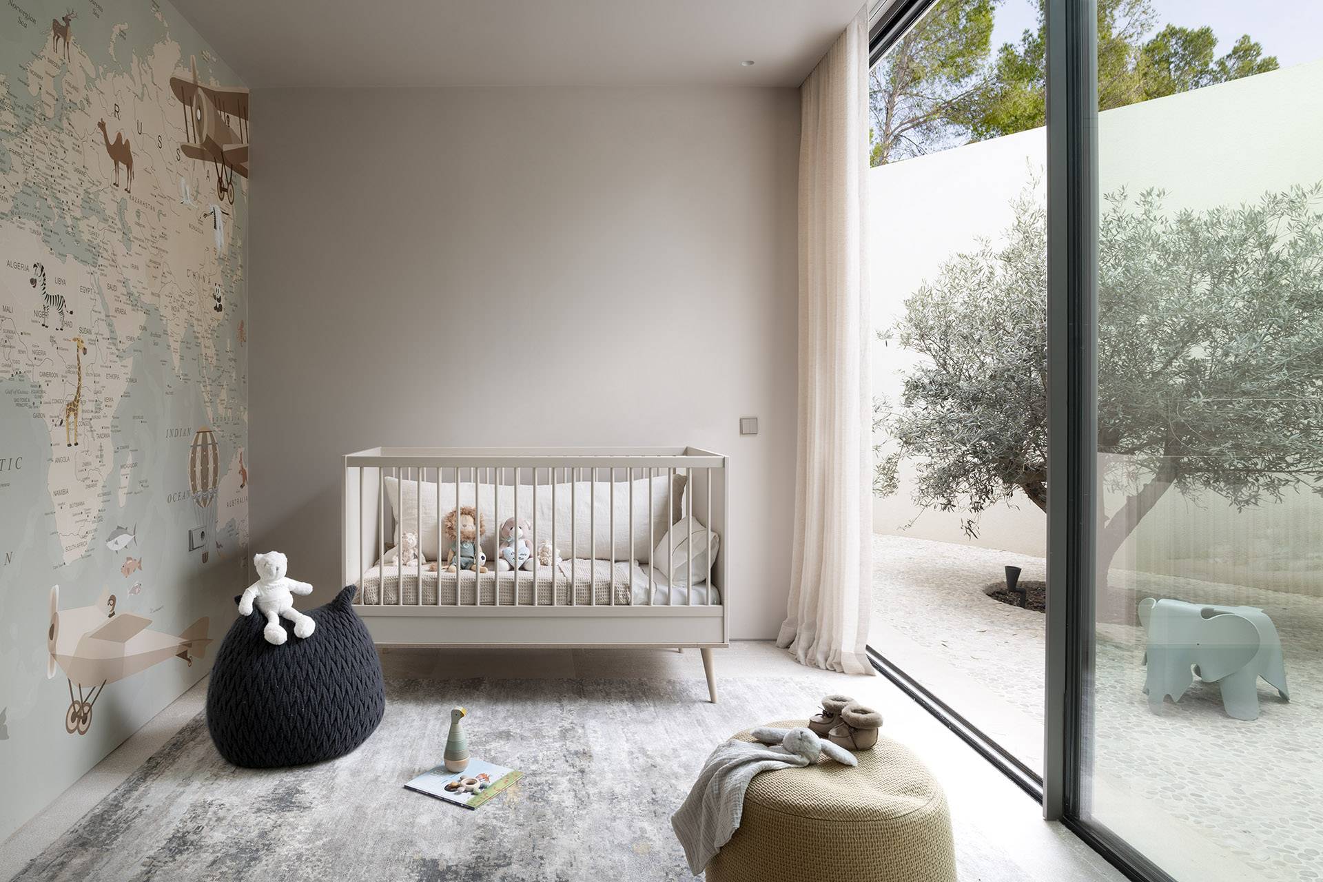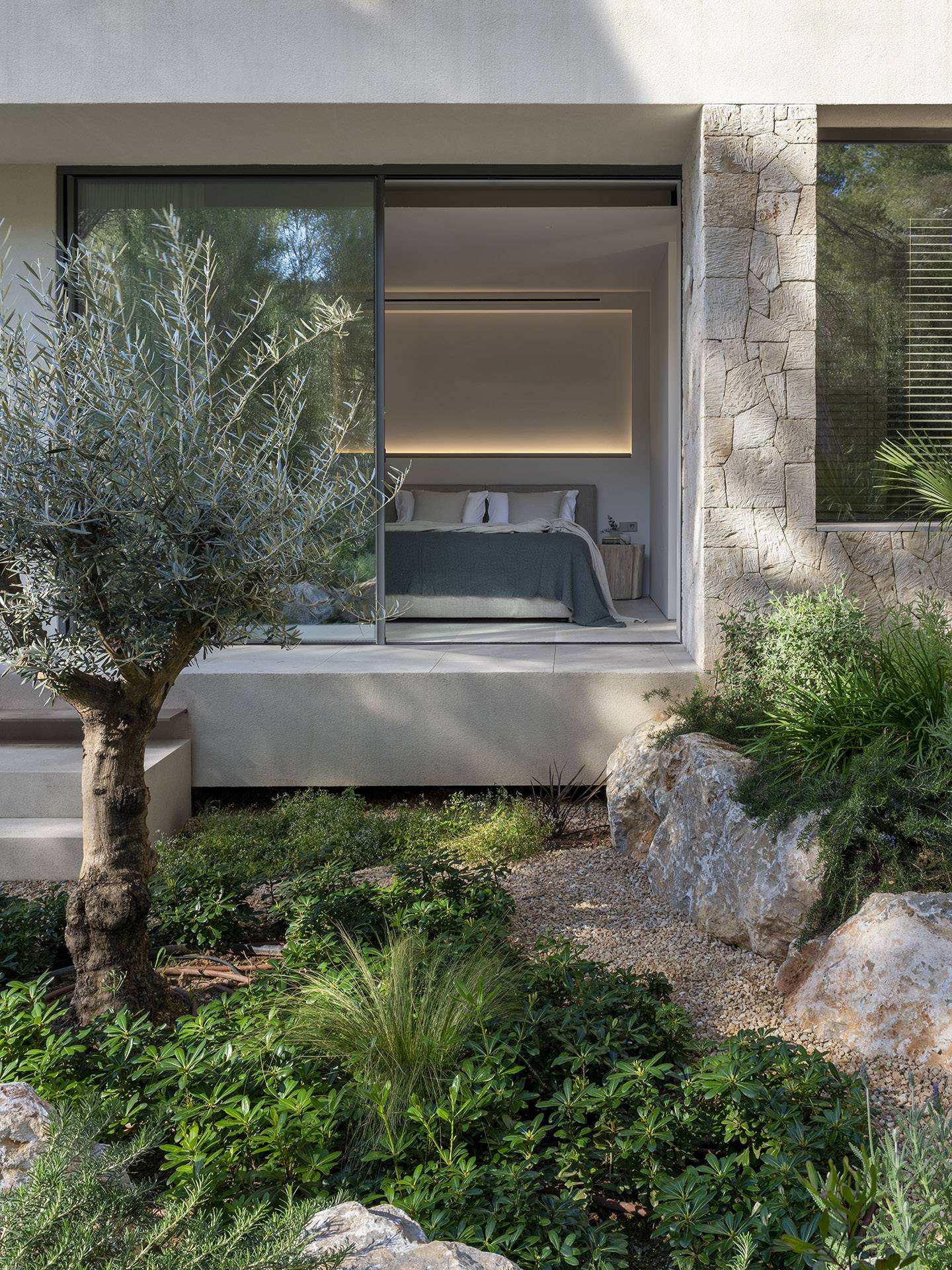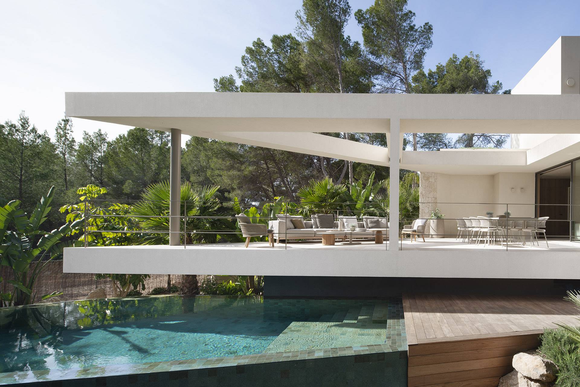 En el centro de esta vivienda, el diseño innovador del arquitecto Joan Miquel Seguí fusiona la geometría con el entorno natural. La villa ofrece espacios interiores elegantes y simples, con mucha luz natural que ilumina la cocina, el salón y el comedor, creando un ambiente tranquilo para la vida diaria.
