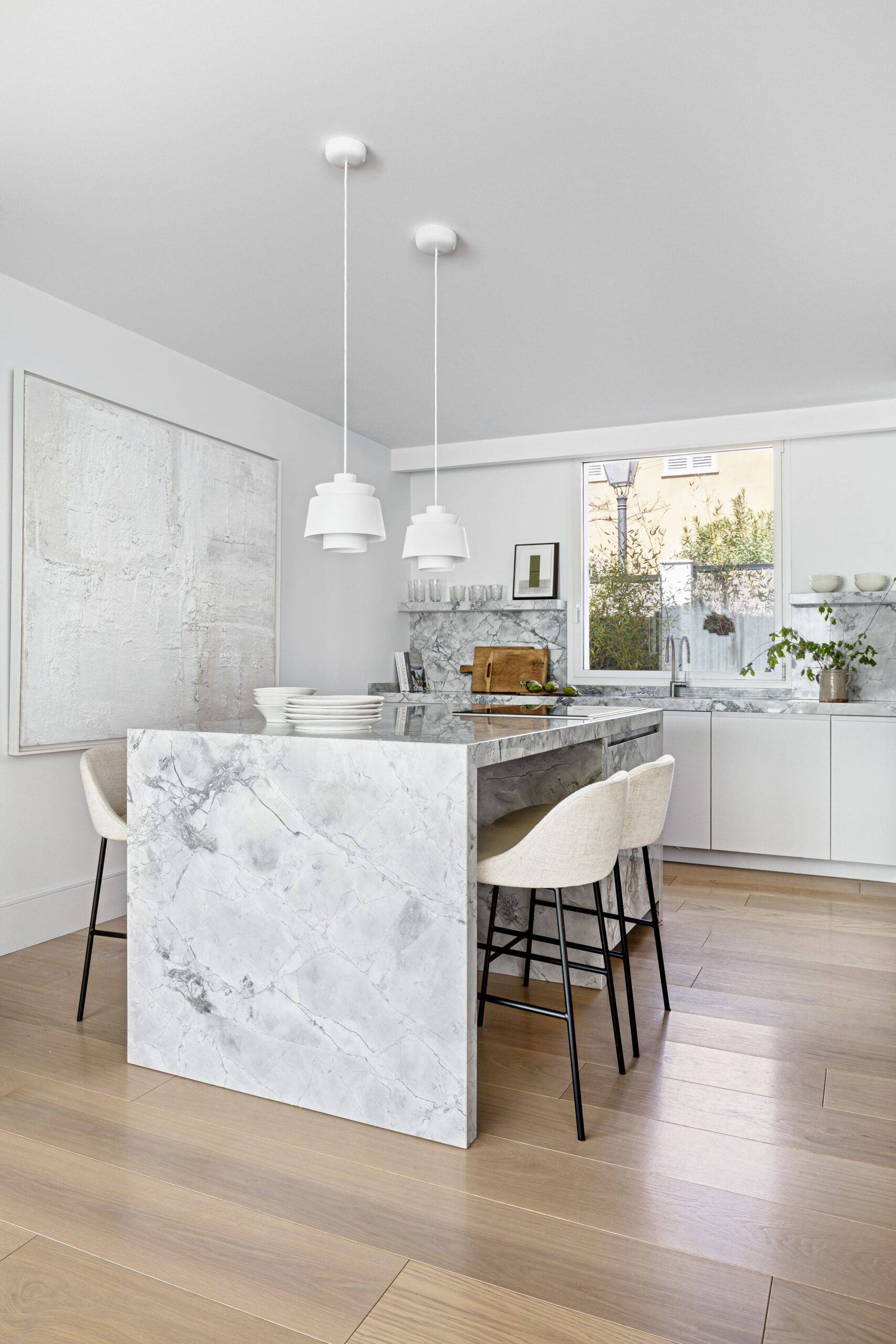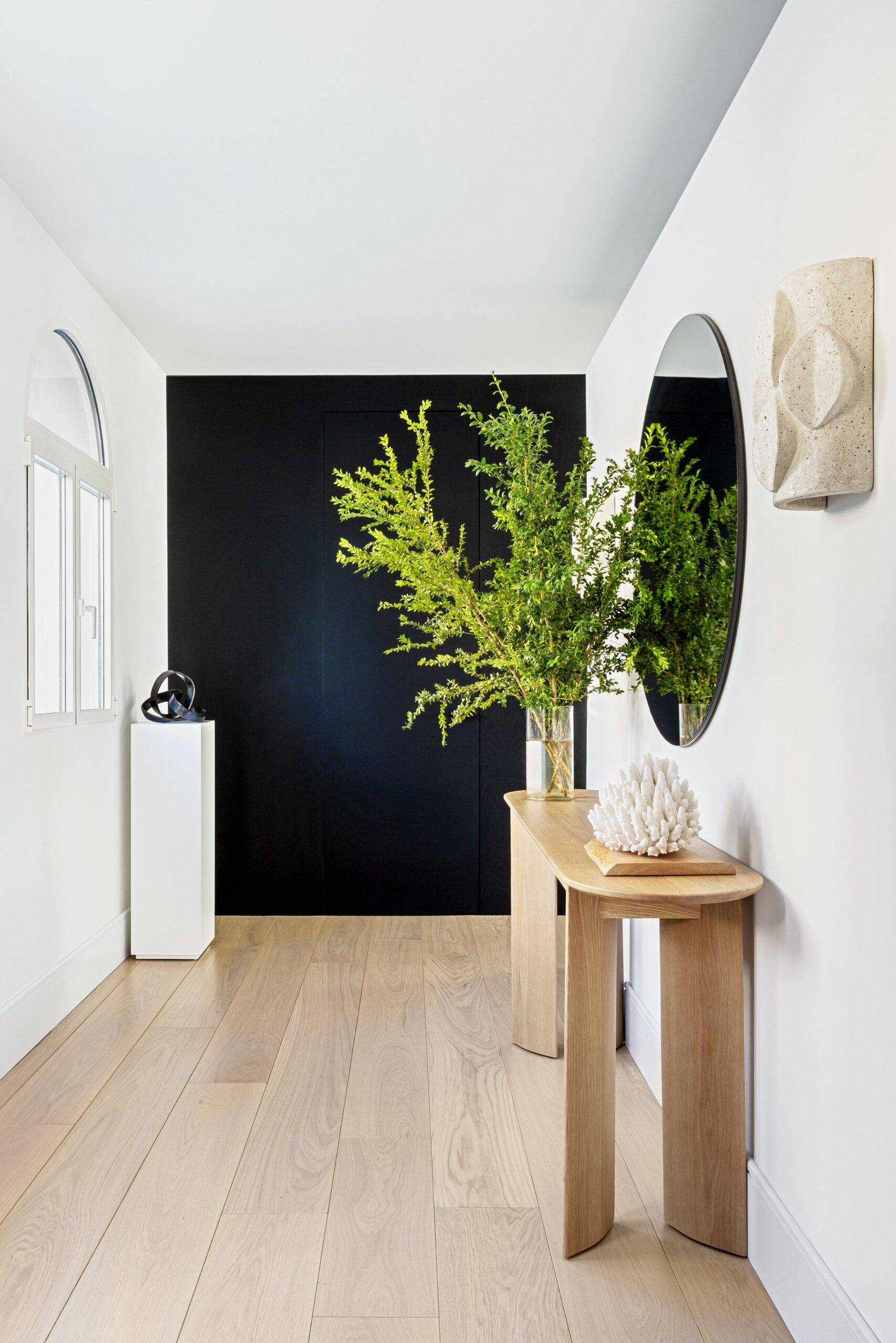 Para realzar aún más esta atmósfera, la interiorista optó por materiales nobles como la madera de roble claro y la piedra natural, combinados con texturas cálidas como el lino, la seda y papeles de pared. Además, integró piezas únicas diseñadas a medida por su estudio, agregando un toque distintivo y exclusivo al espacio.