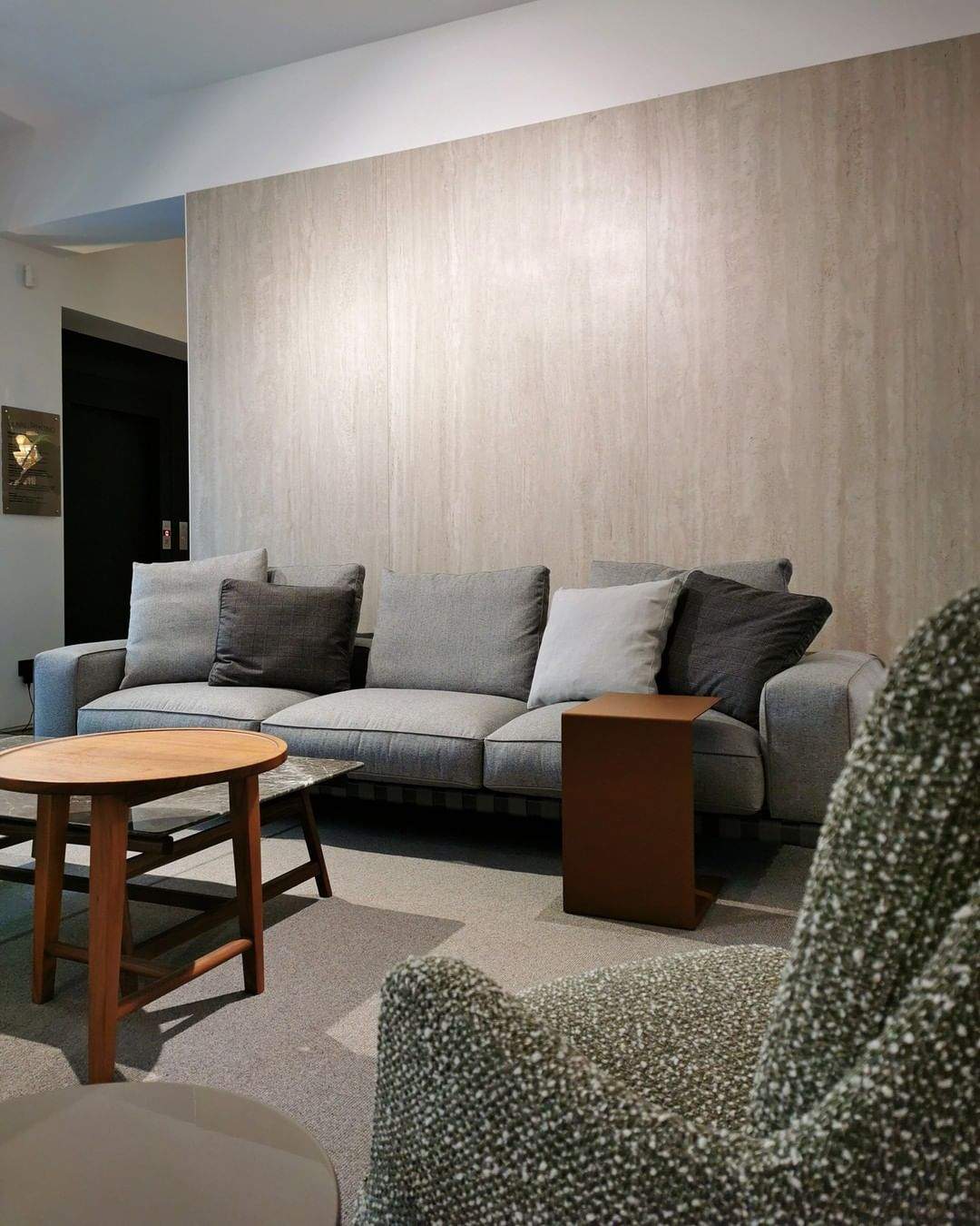 Texturas suaves y formas redondeadas generan un diseño relajado y contemporáneo perfecto para espacios de descanso como este salón, en el que los tonos neutros se combinan con madera natural y variaciones de verde para generar una atractiva gama cromática.