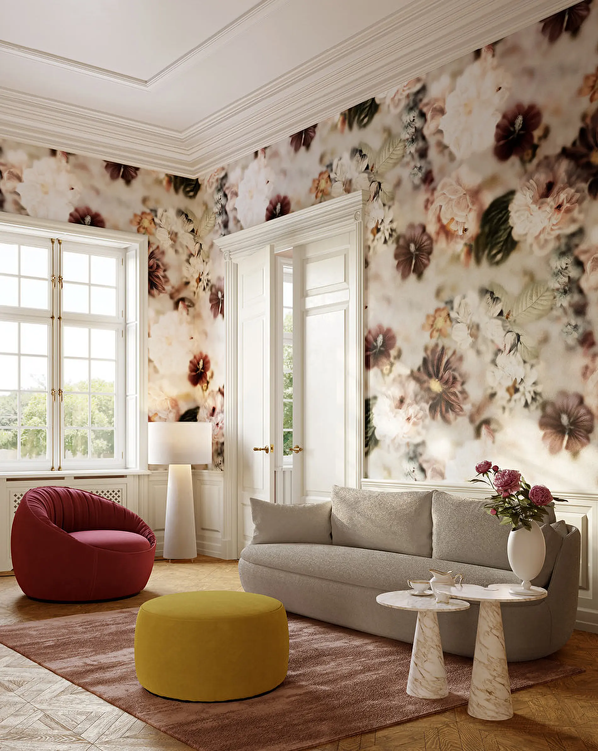 Desde Gunni & Trentino queremos destacar que esta colección esta compuesta por papeles pintados y losas de cerámica pequeñas y grandes (todas ellas disponibles en diferentes variantes de color), un tocador, tres espejos y una línea de objetos de cerámica. Además se caracteriza por ser la transformación de la estética en encanto, celebrando el poder de la naturaleza y la majestuosidad del mundo de las flores.